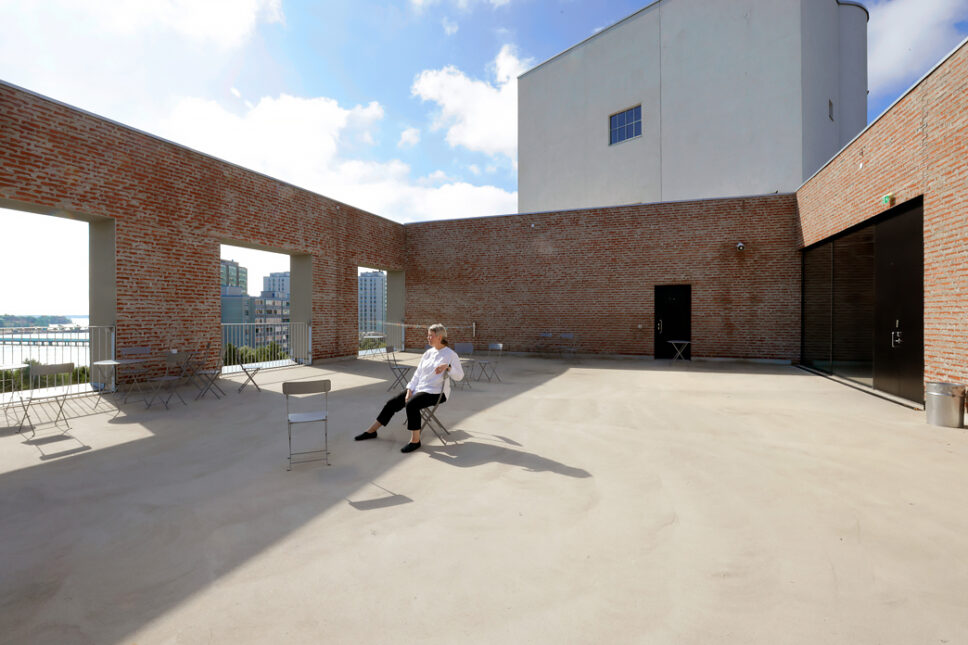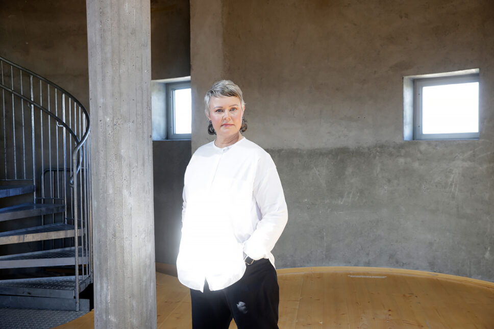 Afryn kehitysjohtaja Katja Soini istuu Kuvataideakatemian uudisrakennus Myllyn katolla Helsingin Hakaniemessä. Afry on tehnyt kohteen rakennesuunnittelun, ja se on saanut Vuoden Betonirakenne -palkinnon vuonna 2021.